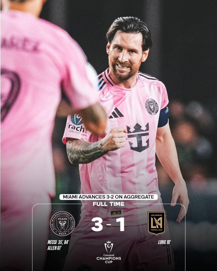 尽管洛杉矶FC也做出了不少努力,第57分钟乌斯塔里门将化解了对手的一次单刀机会,展示了其出色的门前应变能力。最终,迈阿密国际凭借这场比赛的出色表现,以3-1击败洛杉矶FC,总比分3-2成功晋级半决赛,即将迎战墨西哥美洲狮与温哥华白浪的胜者。